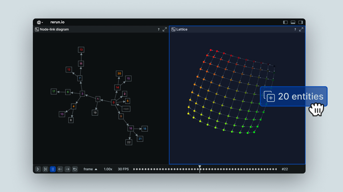 Rerun 0.21 brings our first iteration on supporting general graphs in Rerun with a new graph view. It also comes with a host of UX improvements like drag & drop of entities, undo & redo, grids for 3D views and more.