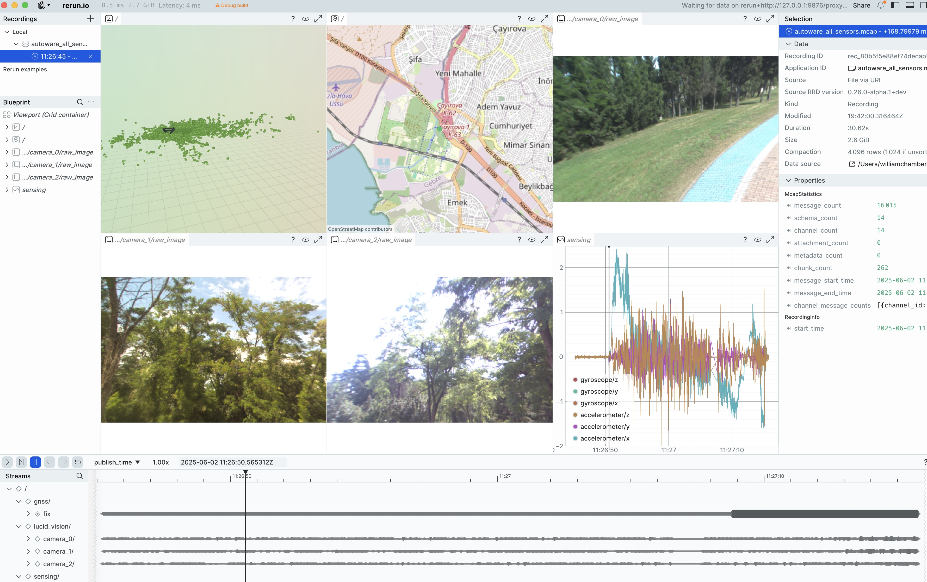 Rerun 0.20 adds early support for geospatial data with the new GeoPoints and GeoLineStrings archetypes and a new map view. It also adds H.264 support to the native viewer together with many performance and stability improvements for video in Rerun..